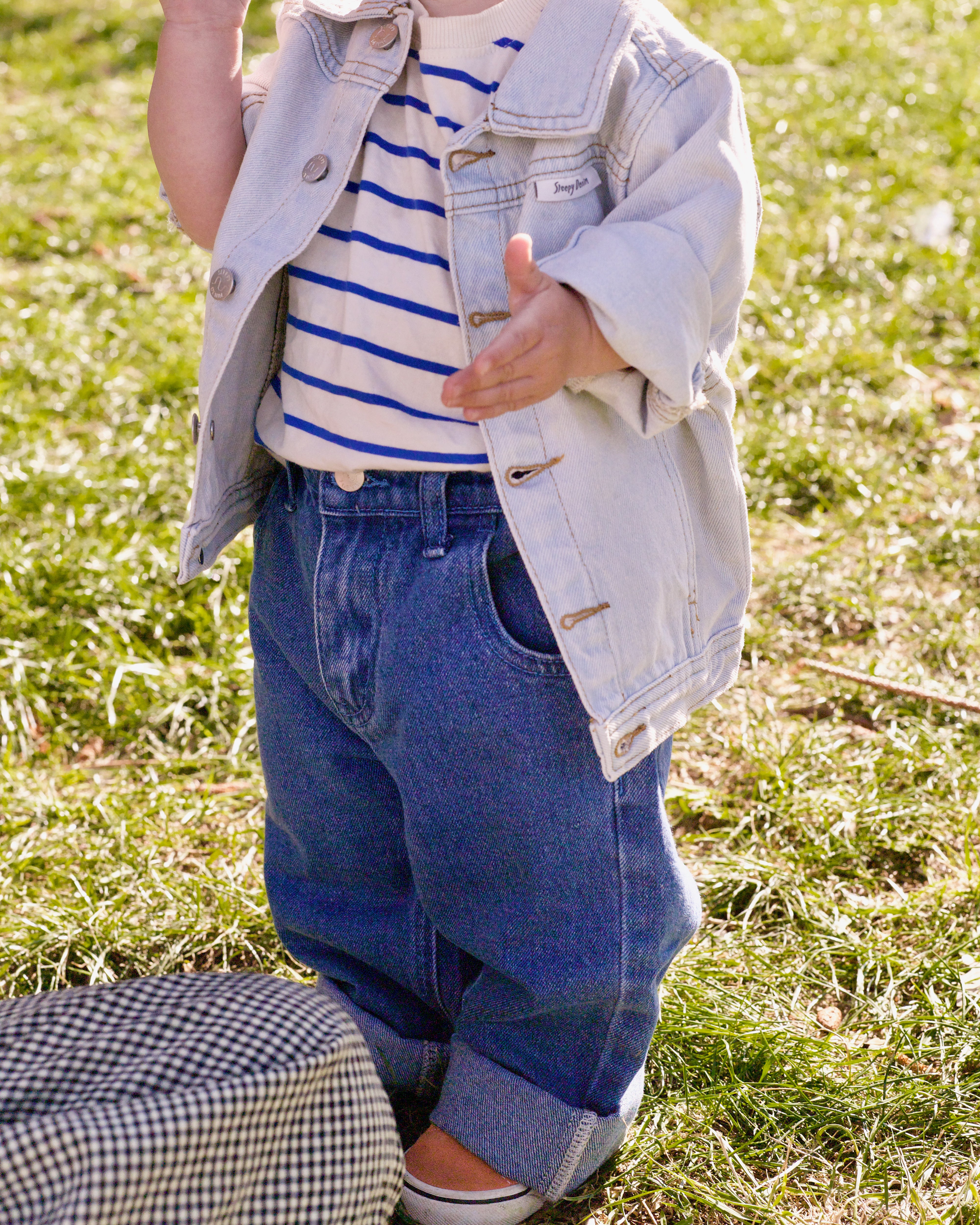 Hergestellt aus Sleepy Denims eigener weicher Bio-Baumwolle in Kinderqualität, die strapazierfähig ist und den Test der Zeit übersteht. Klassische und entspannte Passform, lässt sich leicht mit jedem Kleidungsstück kombinieren.