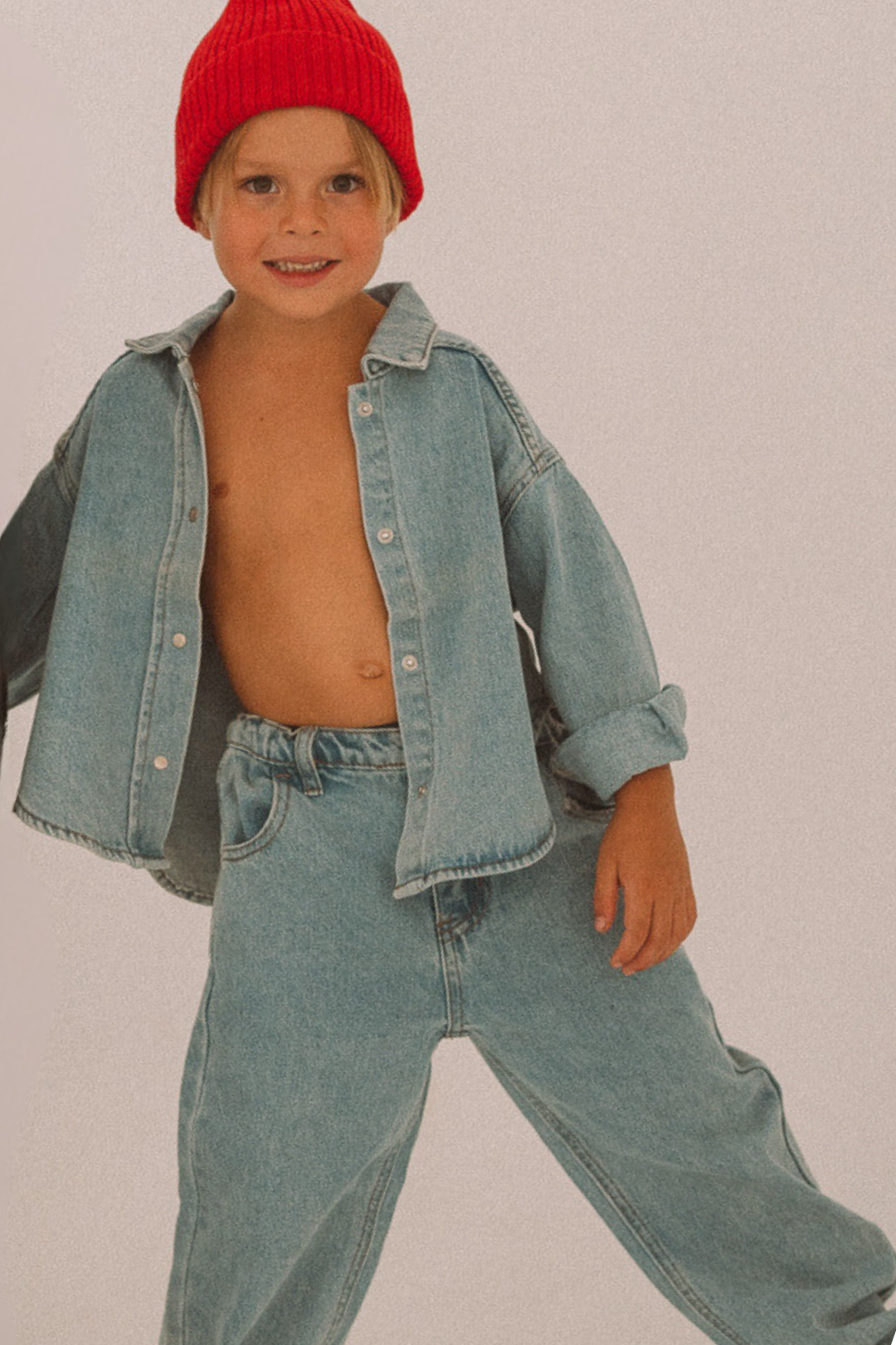 Hergestellt aus Sleepy Denims eigener weicher Bio-Baumwolle in Kinderqualität, die strapazierfähig ist und den Test der Zeit übersteht. Klassische und entspannte Passform, lässt sich leicht mit jedem Kleidungsstück kombinieren.