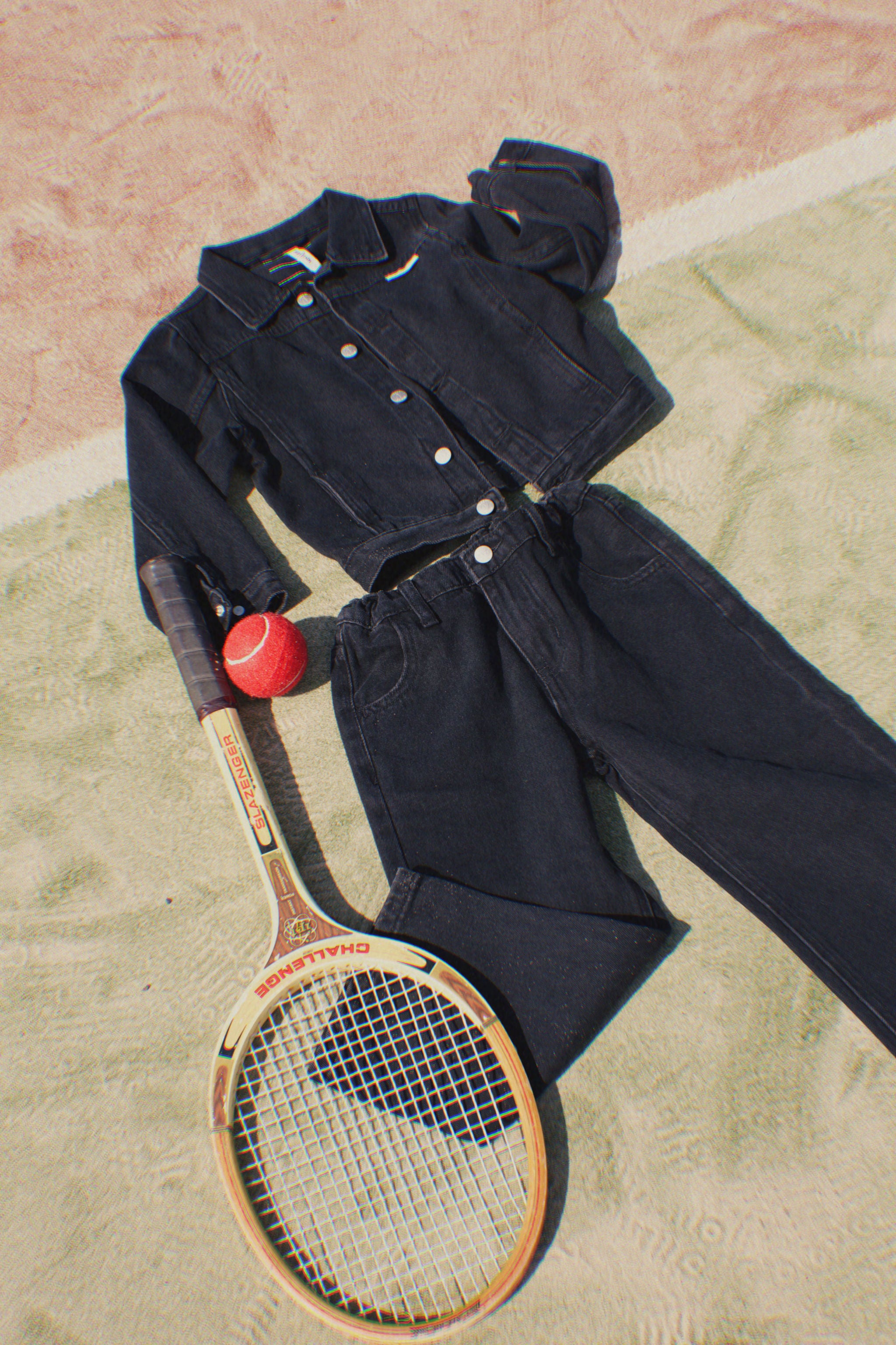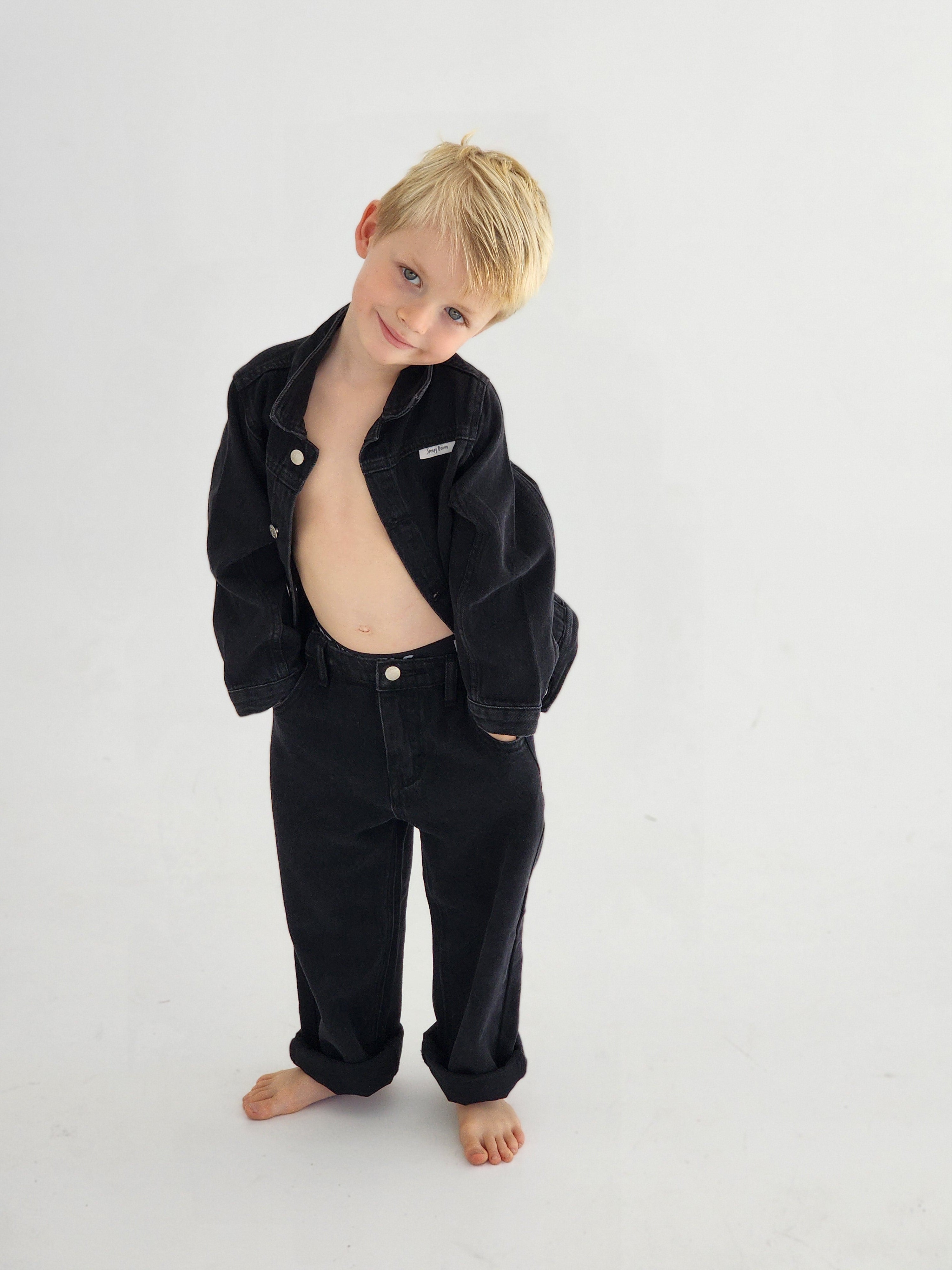 Die Twilight-Jacke aus schwarzem Denim und die Limitless-Jeans aus schwarzem Denim.