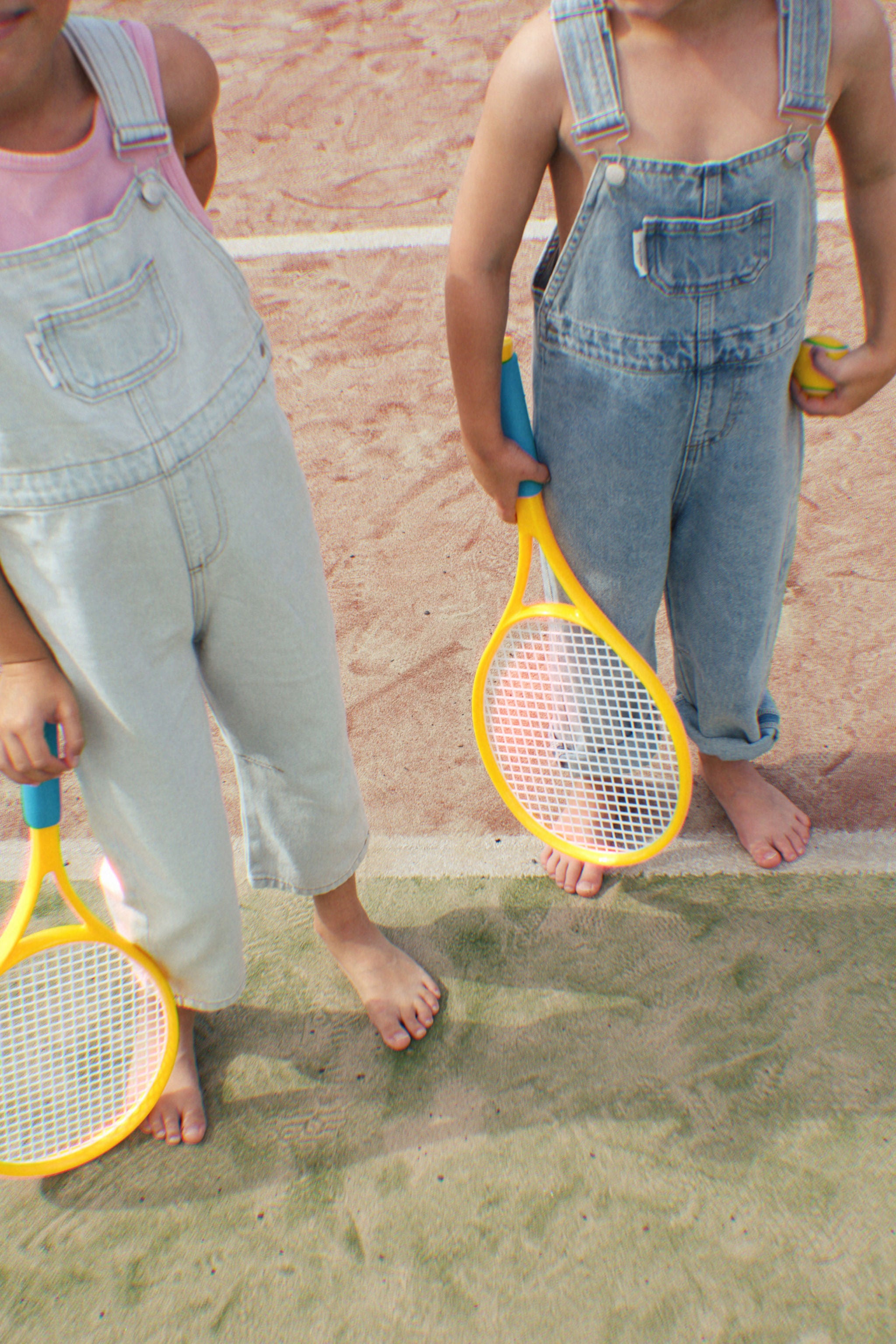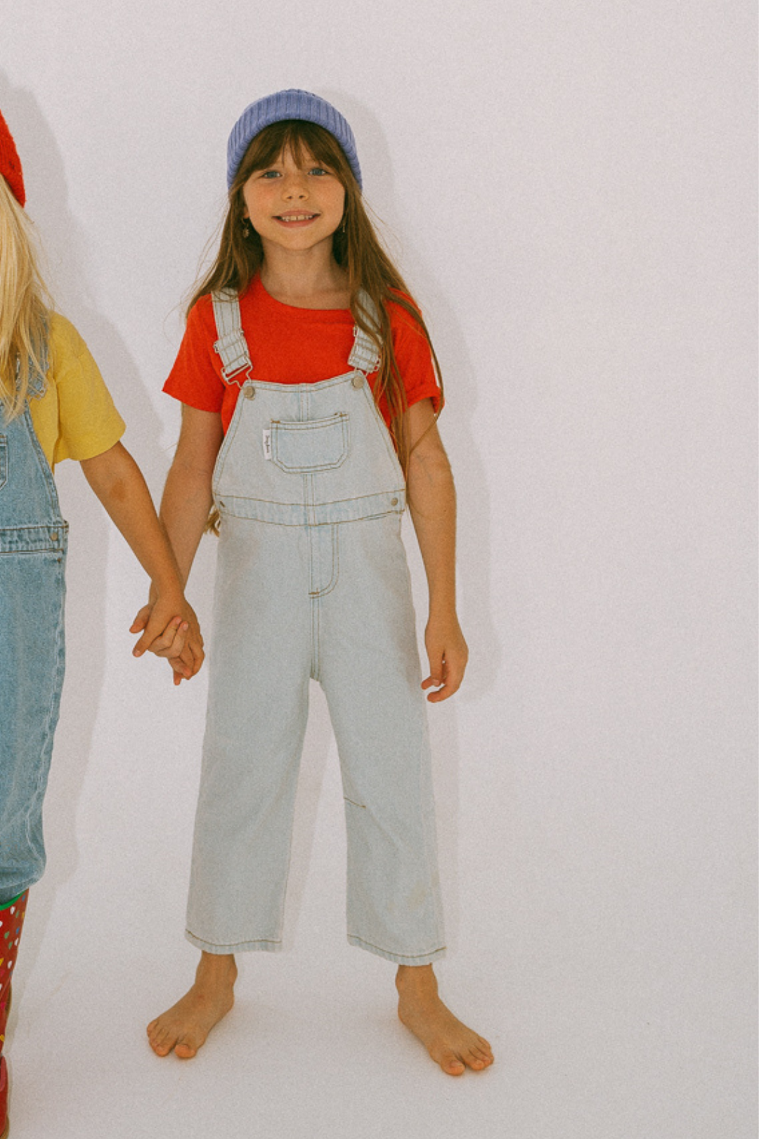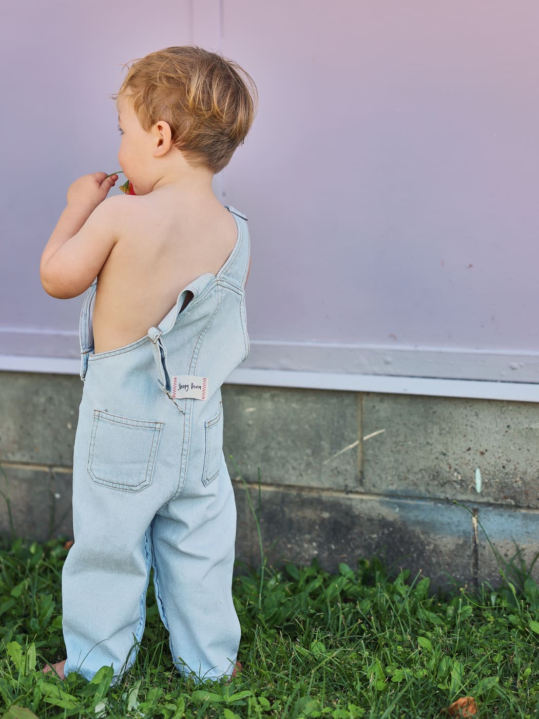 Unsere charakteristischen Denim-Overalls sind für eine Unisex-Passform zugeschnitten und durchlaufen unsere strengen Testen wildes Spielen – Klettern, Springen, Ninja-Kicks und vorbei an einem Regenbogen aus Farben!