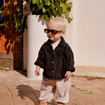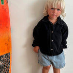 The Dawning Shacket is our Sleepy Denim light weight organic cotton, versatile piece without all fuss. It can be worn as a denim jacket or as a denim shirt. Featuring our unique curve side body design and drop shoulders, perfect for your little sleep dodger to express themselves as a stylish individual.