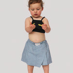 Wink Skort - So comfy shorts and a skirt in one! Made in 100% cotton. Available in two colours, Chalk Stripe and Chambray Stripe
